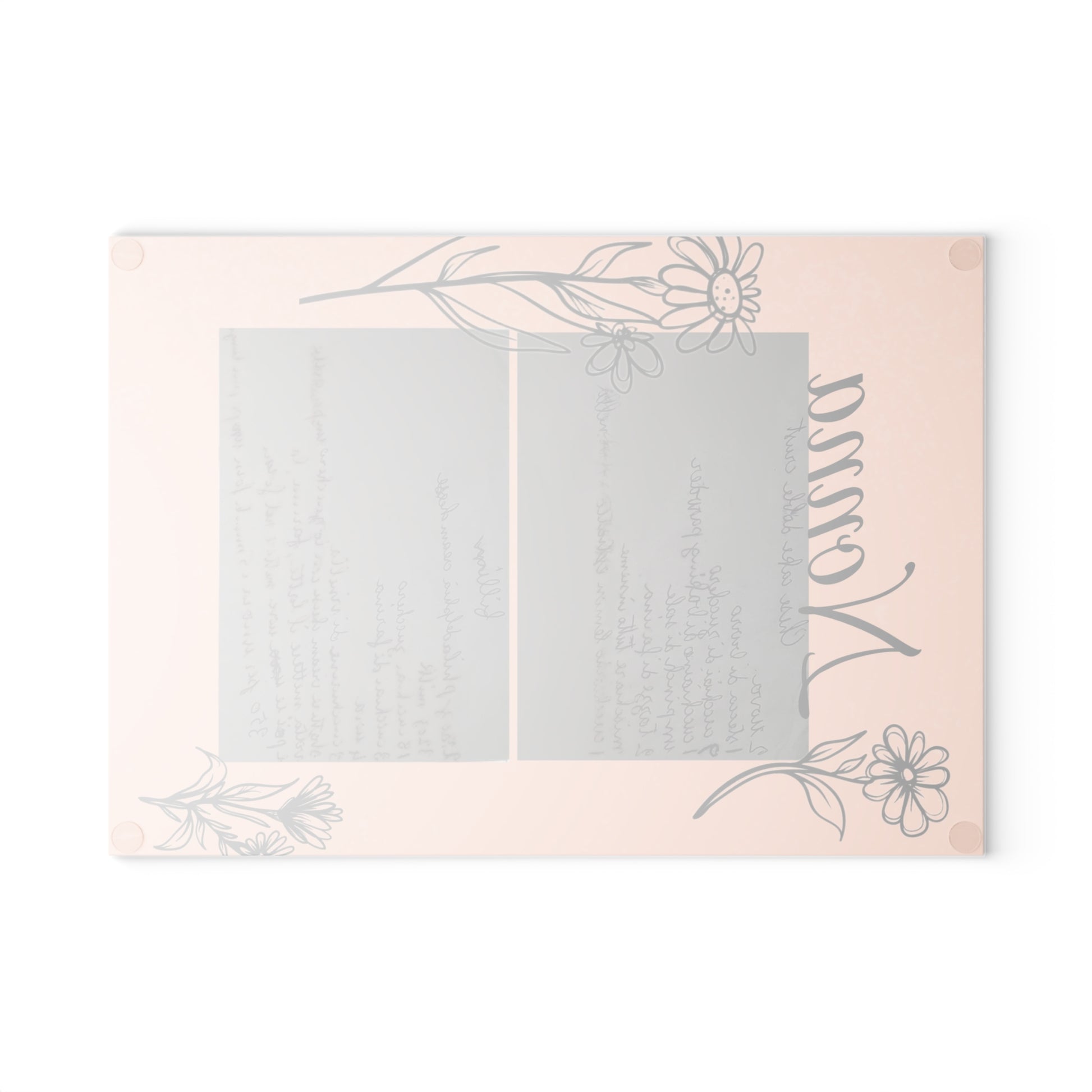 Bring a touch of character into any kitchen with this custom glass cutting board. Its tampered glass material is robust and helps prepare many a tasty meal for a long time to come. The textured surface makes it an ideal chopping, slicing, and dicing area. Available in two sizes: 8" x 11" and 11" x 15".