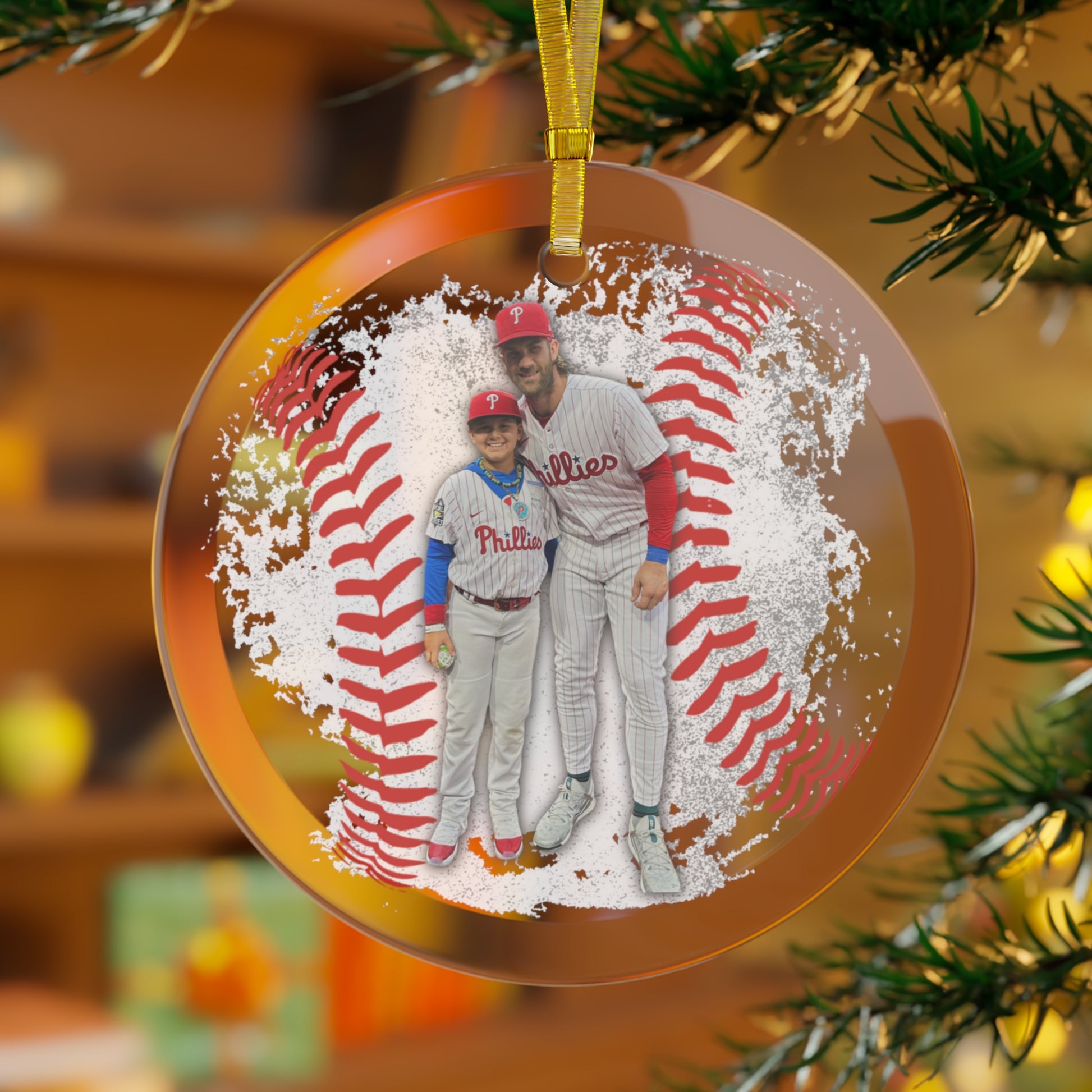 Add a personalized touch to your home with this customizable glass ornament. It comes with a gold-colored ribbon so you can hang it anywhere around the home. It will look as much in place on a wall or by a window as it will in a Christmas tree.
